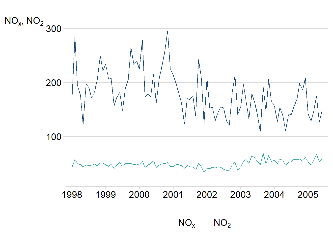 p_timeplot <- timePlot(mydata, "nox", avg.time = "month", plot = FALSE)$plot