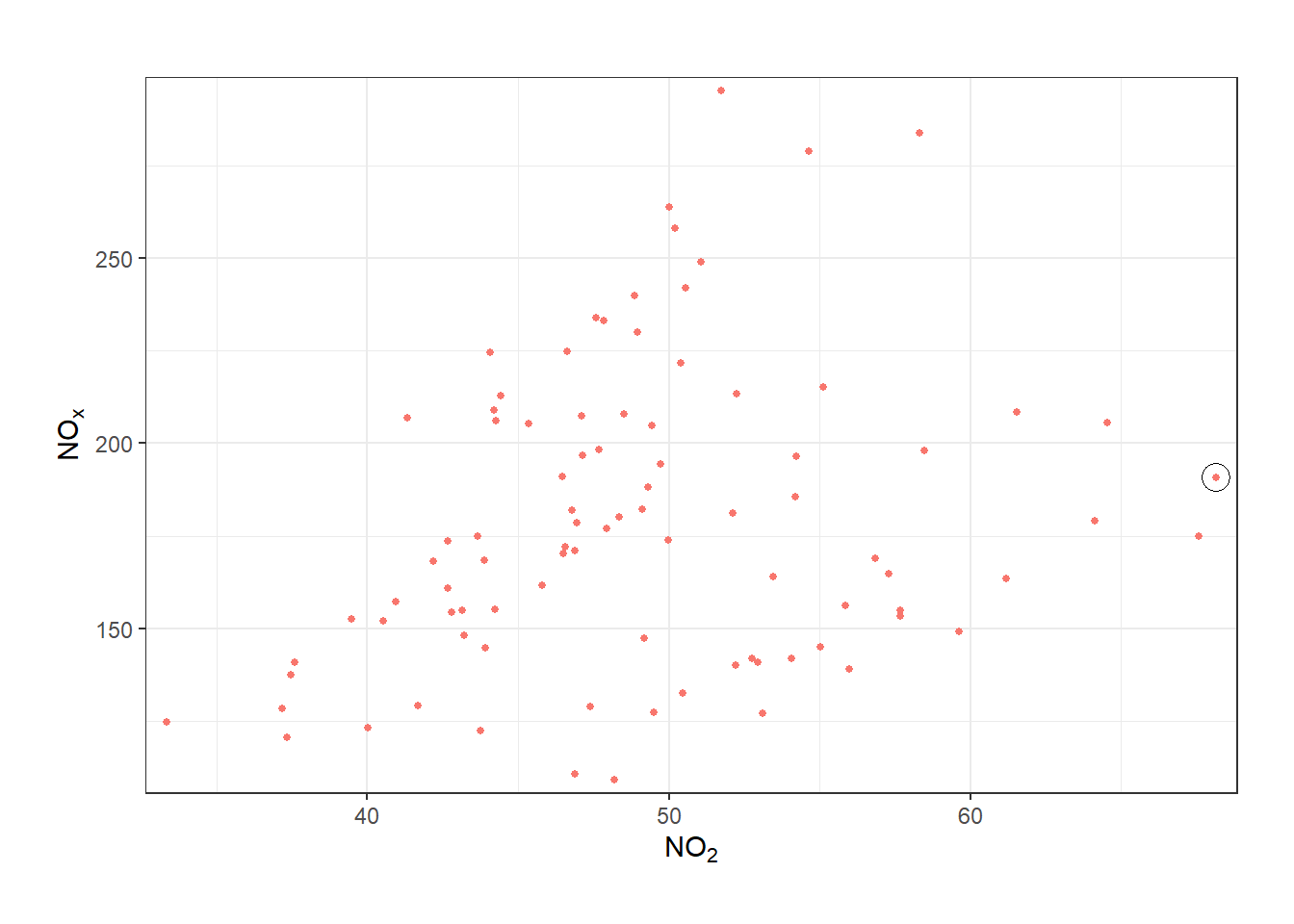 To highlight a point, you can use geom = "point" and specify the coordinates of the point you want to highlight. For example, to highlight the point with the maximum NO2 concentration, you can first extract that point from the data and then add it as an annotation. Note that different openair plots will have different data structures, so explore what’s available for your specific plot of interest.